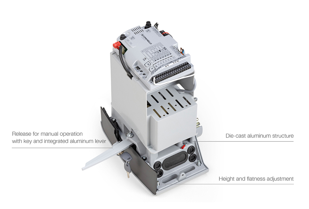 De ontvanger is geïntegreerd in het bedieningspaneel. De motorlagers garanderen een stille beweging, zelfs onder volledige belasting.